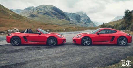 The Porsche 718 Boxster T (L) and 718 Cayman T.