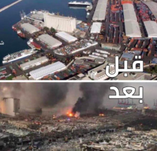 وهذه أخر صورة لمرفأ بيروت بعد الانفجار وقبله.