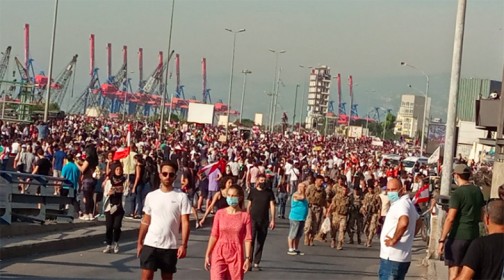تجمع آلاف اللبنانيين في بيروت إحياد لذكرى انفجار المرفأ.