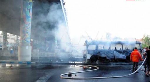 وأفادت "سانا" بحدوث "تفجير إرهابي بعبوتين ناسفتين أثناء مرور حافلة مبيت عسكرية عند جسر الرئيس بدمشق".