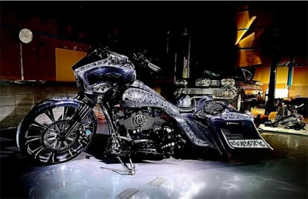 بمناسبة معرض Tokyo Auto Salon 2022 ، تعاونت شركة Iron Paddock اليابانية للدراجات النارية مع الفنان تاكاهيكو إيزاوا من استوديو روهان / إيزاوا للفنون والتصميم لإنشاء هارلي ديفيدسون المبهرة مع مظهر خارجي معدني ثلاثي الأبعاد.  الهيكل الفضي مغطى بنقوش معقدة من أنماط الزينة الزهرية التي تشبه وشم إيرزومي. استغرق Iron Paddock حوالي عام لبناء الدراجة ، وعامًا آخر لتاكاهيكو إيزاوا لتغطية الجزء الخارجي في "طلاء المعدن" الأصلي ، تطلبت هذه المهمة، دعما ماليا وعملا متينا لمنع تغير اللون الجديد  والأضرار الناتجة عن الأشعة فوق البنفسجية.   تظهر النتيجة دراجة نارية لامعة مغطاة بأنماط "وشم" محفورة. بالإضافة إلى شكلها الخارجي المثير للإعجاب ، تتميز الدراجة النارية بكاتم صوت أصلي من جانب متصل بكاميرات Screamin Eagle Pro عالية الأداء XL ، وجهاز موالف فلاش قوي PowerVision يضمن أعلى أداء.  يعتبر الخط الجميل الذي يربط خزان البنزين الممدد ، ووحدة التحكم الأصلية ، والغطاء الجانبي من المعالم البارزة.
