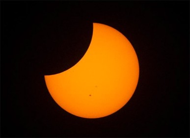 تابع الآسيويون كسوفا بسيطا للشمس التي اتخذت اللون البرتقالي في سماء وفي سماء أخرى غاصت في الغيوم.