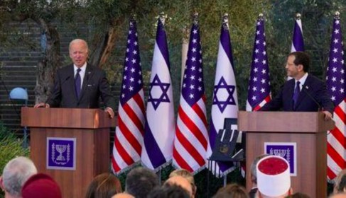 ناقش الرئيس الأمريكي جو بايدن ونظيره الإسرائيلي إسحق هرتسوغ في اجتماع تعزيز التعاون لمنع إيران من الحصول على سلاح نووي بالإضافة إلى العلاقات الدفاعية المتنامية بين طهران وموسكو. وأضاف البيت الأبيض في بيان إن بايدن وهرتسوغ ناقشا أيضا "الحاجة إلى نهج يستند إلى توافق في الرأي" فيما يتعلق بحزمة التعديلات القضائية التي اقترحها رئيس الوزراء الإسرائيلي بنيامين نتنياهو.