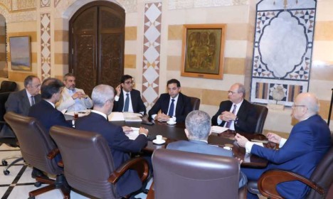 يجتمع رئيس الحكومة نجيب ميقاتي في هذه الاثناء في السرايا، وفي حضور نائب رئيس الحكومة سعادة الشامي ووزير المالية يوسف خليل، مع نواب حاكم مصرف لبنان السادة وسيم منصوري،بشير يقظان، سليم شاهين وألكسندر مراديان. كما يشارك في الاجتماع الامين العام لمجلس الوزراء القاضي محمود مكيّة ومستشار رئيس الحكومة الوزير السابق نقولا نحاس. وأعلن وزير المال في حكومة تصريف الأعمال يوسف خليل بعد اجتماع ميقاتي ونواب الحاكم: الجو يميل حتى الآن الى عدم الاستقالة.