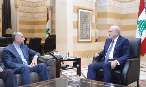 أكدّ  رئيس حكومة تصريف الأعمال نجيب ميقاتي  في لقائه زير خارجية الجمهورية الإسلامية الإيرانية حسين أمير عبد اللهيان في السراي على ضرورة بذل كل المساعي الديبلوماسية من قبل جميع الاطراف لوقف ما يجري من أحداث في غزة وحماية لبنان".