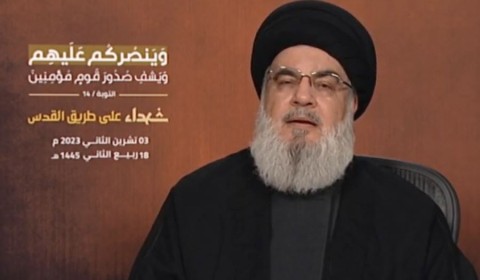 ردّ د رئيس الوزراء الإسرائيلي بنيامين نتانياهو على اطلالة الامين العام لحزب الله السيد حسن نصرالله بتهديد لبنان مرة جديدة، وقال: "أنصح أعداءنا في الشمال بألّا يجربوننا وسيدفعون الثمن غاليًا". وردا على خطاب نصر الله، قال: "أي خطأ سيكلفك ثمنا لا يمكنك حتى تخيله." خطاب نصرالله: وأعلن الامين العام لحزب الله السيد حسن نصر الله ان "المقاومة الاسلامية في لبنان منذ 8 تشرين الأول، تخوض معركة حقيقية لا يشعر بها الا من هو موجود بالفعل في المنطقة الحدودية وهي معركة مختلفة في ظروفها وأهدافها واجراءاتها واستهدافاتها"، مؤكدا ان "الجبهة اللبنانية خففت جزءا كبيرا من القوات التي كانت ستسخر للهجوم على غزة وأخذتها باتجاهنا". وقال :"ما يجري على جبهتنا اللبنانية عند الحدود مهم ومؤثر جدا ولم يتم الاكتفاء به على كل حال وهو غير مسبوق في تاريخ الكيان". ولفت الى انه "لو كان موقفنا التضامن سياسيا والتظاهر لكان الاسرائيلي مرتاحا عند الحدود الشمالية وكانت قواته ستذهب الى غزة".وقال :"جبهة لبنان استطاعت ان تجلب ثلث الجيش الاسرائيلي الى الحدود مع لبنان"، مضيفا :"جزء مهم من القوات الصهيونية التي ذهبت الى الجبهة الشمالية هي قوات نخبة ونصف القدرات البحرية الاسرائيلية موجودة في البحر المتوسط مقابلنا ومقابل حيفا. أضاف :" ربع القوات الجوية مسخرة باتجاه لبنان وما يقارب نصف الدفاع الصاروخي موجه باتجاه جبهة لبنان ونزوح عشرات الآلاف من سكان المستعمرات". وأكد ان "هذه العمليات على الحدود أوجدت حالة من القلق والتوتر والذعر لدى قيادة العدو وأيضا لدى الأميركيين". وقال :"العدو يقلق من امكانية ان تذهب هذه الجبهة الى تصعيد اضافي او تتدحرج هذه الجبهة الى حرب واسعة وهذا احتمال واقعي ويمكن ان يحصل وعلى العدو ان يحسب له الحساب. حضورنا في الجبهة وهذا العمل اليومي يجعل العدو مردوعا. وعمليات المقاومة في الجنوب تقول لهذا العدو الذي قد يفكر بالاعتداء على لبنان أو بعملية استباقية أنك سترتكب أكبر حماقة في تاريخ وجودك". أضاف :"هذه المشاهد في غزة ستجعلنا أكثر ايمانا وقناعة بوجوب التحدي وعدم الاستسلام مهما كانت التحديات والتضحيات. ويتحمل العدو اليوم كل عمليات المقاومة ويضبط إيقاعه لأن لديه خشية حقيقية من ذهاب الأمور إلى ما يخاف". أضاف :هذه العمليات على الحدود هي تعبير عن تضامننا مع غزة لتخفيف الضغط عنهم". قيل لنا منذ اليوم الأول اذا فتحتم جبهة في الجنوب فالطيران الاميركي سوف يقصفكم لكن هذا التهديد لم يغير من موقفنا أبدا. وتابع :"بدأنا العمل بهذه الجبهة في الجنوب وتصاعدها وتطورها مرهون بأحد أمرين أساسيين الأمر الأول هو مسار وتطور الأحداث في غزة والأمر الثاني هو سلوك العدو الصهيوني تجاه لبنان". وحذر العدو الصهيوني من التمادي الذي طال بعض المدنيين في لبنان وهذا سيعيدنا الى المدني مقابل المدني". وقال: "أقول بكل شفافية وغموض بناء ان كل الاحتمالات في جبهتنا اللبنانية مفتوحة وان كل الخيارات مطروحة ويمكن ان نذهب اليها في أي وقت من الأوقات ويجب ان نكون جميعا جاهزين لكل الفرضيات المقبلة. رسالة للاميركيين وتوجه نصر الله الى الاميركيين:" أساطليكم في البحر المتوسط لا تخيفنا ولن تخيفنا في يوم من الايام وأقول لكم ان اساطيلكم التي تهددون بها لقد أعددنا لها عدتها أيضا. الذين هزموكم في بداية الثمانينيات ما زالوا على قيد الحياة ومعهم اليوم أولادهم وأحفادهم". أضاف :"من يريد منع قيام حرب أميركية يجب ان يسارع الى وقف العدوان على غزة واذا حصلت الحرب في المنطقة فلا اساطيلكم تنفع ولا القتال من الجو ينفع. وفي حال أي حرب إقليمية ستكون مصالحكم وجنودكم الضحية والخاسر الأكبر". وتوجه نصر الله الى الشعب الفلسطيني وكل المقاومين الشرفاء في المنطقة:" ما زلنا نحتاج الى وقت ولكننا ننتصر بالنقاط وهكذا انتصرنا في عام 2006 وفي غزة. وهكذا حققت المقاومة في الضفة انجازات". وقال :"المعركة هي معركة الصمود والصبر والتحمل وتراكم الانجازات ومنع العدو من تحقيق أهدافه ونحن جميع