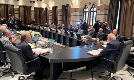 رأس رئيس حكومة تصريف الأعمال نجيب ميقاتي جلسة لمجلس الوزراء في السراي الحكومي.
