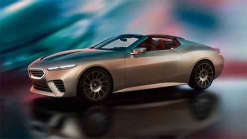 قادت الفنانة جولي مهريتو عملية إعادة تقديمها بعد ظهورها لأول مرة في مركز بومبيدو في باريس. تتجول السيارة ذات السقف المفتوح ذات المقعدين بمقاعدها الجلدية، والتي تكمل اللون البني المحمر في الداخل. في الداخل، التفاصيل المصنوعة يدويًا في الجلد المصنوع خصيصًا للمقاعد وألواح الأبواب وصندوق الأمتعة وأغطية السقف المغطاة بالجلد وقضيب اللف وحتى حول ألواح مكبر الصوت تحية لنمط جلد بودابست الأحذية، نوع من أحذية الديربي ذات نظام ربط مغلق. عندما يسطع الضوء الطبيعي على عجلة القيادة، وناقل الحركة، والمقاعد، فإنه يتلألأ بألوان باهرة بسبب البلورات المقطوعة حسب الطلب والتي تظهر في التصميم الداخلي الجلدي للسيارة النموذجية. من الخارج، تشبه سيارة BMW Concept Skytop عداءًا ذو وجه شرس. يحتوي الجزء الخارجي على مصابيح أمامية LED مدببة، تم وضعها على حاملات من الألومنيوم المصقول، وتصميم BMW على شكل أنف القرش مع شبكة كلوية مضيئة، والتي تعود إلى سيارات BMW Roadster السابقة مثل BMW 507 وBMW Z8 . تمّ تطوير هذه المصابيح الأمامية LED، التي تذكرنا بآلية الساعة، خصيصًا للسيارة النموذجية. تحتوي السيارة أيضًا على حافة مرتفعة تبدأ من غطاء المحرك، وتستمر عبر الجزء الداخلي للسيارة، وتنتهي عند شريط من الألومنيوم على الباب الخلفي. عند النظر إليها من الأعلى، يظهر غطاء المحرك على شكل سهم إلى جانب الذيل المدبب البارز. يكشف المظهر الجانبي قطعًا جانبية واضحة يحدد الجسم العضلي لسيارة BMW Concept Skytop. ومن هنا تنبثق ميزة أخرى: إزالة مقابض الأبواب التقليدية. بدلاً من اختيار المقابض النموذجية، تضع BMW ما تسميه "جنيحات". يتم وضعها مباشرة فوق الأبواب، "أكتاف" السيارة، وعندما يريد المستخدمون دخول السيارة، ما عليهم سوى لمس هذه الجنيحات باستخدام أجهزة الاستشعار،حتى تُفتح الأبواب.