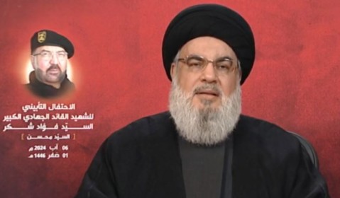في مستهلّ كلمته قال نصرالله ان "العدو قد يلجا أثناء الكلمة إلى خرق جدار الصوت من أجل إخافة الحضور وهذا يدل على أنَّ "عقلاتو كتير صاروا صغار"، وقال: " سر قوتنا يكمن في الاستمرار لأن النيل من قادتنا لن يمس بعزمنا وتصميمنا على مواصلة الطريق". اضاف: "القائد الشهيد السيد فؤاد شكر من الجيل المؤسس في المقاومة، ولكن إضافة إلى ذلك كان من القادة المؤسسين. وغرفة العمليات المركزية في حرب تموز كانت في عهدة السيد محسن ولم يغادرها طوال 33 يومًا. ومنذ اليوم الأول لبدء طوفان الأقصى بدأ السيد محسن بالتحضير والترتيب لمعركة الإسناد وكان موجودًا في غرفة العمليات طيلة فترة المعركة. هو من العقول الاستراتيجية في المقاومة، كان يفكّر بكلّ الأمة وثريًا بالأفكار ولديه قدرة عالية على التخطيط". اضاف: "نحن في شهادة القادة نعترف بالألم والحزن لأننا بشر ولكننا نجمع بين الحزن للفراق، والغبطة بأنهم وصلوا إلى مرتبة الشهادة. نحن نعترف بحجم الخسارة وشهادة السيّد محسن خسارة كبيرة ولكن هذا لا يهزّنا على الاطلاق ولا يوقفنا والدليل العمليات المستمرة والعمليات الجديدة بمستوطنات وعمقٍ جديدين". وتابع: "في الآونة الأخيرة تطورت ظروف تساعد بقوة على فهم حقيقة الأهداف التي تسعى إليها حكومة نتنياهو المتطرف كتصريح وزير المالية الإسرائيلي الذي اعتبر أنه من "العدل" قتل مليوني فلسطيني في غزة إذا لم يرجع الأسرى الصهاينة. ومن التطورات المهمة رفض "الكنيست" قيام دولة فلسطينية شبه إجماع كبير في كيان العدو على ذلك بمعزل عن طبيعة هذه الدولة". ولفت الى ان "هذه التطورات تهم كل من يراهن في فلسطين أو في العالم العربي والإسلامي على مسار تفاوضي لإقامة دولة فلسطينية وصفعة لهم جميعًا ولكل الدول العربية التي تتبنى مبادرة السلام العربية". واشار الى ان "نتنياهو لا يريد وقفًا للحرب ولإطلاق النار ويصر على ذلك في كل الصفقات ويسعى لتهجير أهل غزة, فالإسرائيلي لا يقبل بدولة فلسطينية حتى في قطاع غزة لأنهم يرون فيها خطرًا وجوديًا ولو في اعترف بها دوليًا فقط في غزة. المشروع في الضفة من قبل طوفان الأقصى هو تهجير أهل الضفة بالقتل والعمليات والقصف بسلاح الجو. هناك مشروع صهيوني يقول لا دولة فلسطينية، بينما مشروع جبهة المقاومة هو ان فلسطين من البحر إلى النهر، وكل المشاريع في الوسط ستذوب لأنه لا مستقبل أمامها وغير واقعية". وقال: "إذا انتصر نتنياهو والتحالف الأميركي الصهيوني على المقاومة في غزة والضفة، سيأتي الكيان القاتل للأطفال للتسيّد في المنطقة. الولايات المتحدة الأميركية صمتت على مدى 31 عامًا والآن حديثها عن إقامة دولة فلسطينية كذب ونفاق، لأن أي تصويت حول دولة فلسطينية في مجلس الأمن يرفع الأميركي حق "الفيتو". الأميركي يخادع العالم ويقول بأنه غير راضٍ عن أداء نتنياهو خلال الحرب ويعمل للضغط عليه، وهذا كله كذب لأنهم يزوّدونه بأطنان من السلاح". وأوضح أنّ "الآن، في ظل الحديث عن رد من إيران أو حزب الله أو اليمن أو المحور، فإنّ الولايات المتحدة الأميركية وأساطيلها تتقدّم للدفاع عن إسرائيل في رسالةٍ علنية"، مشددًا على أنّ "إسرائيل لم تعد قوية كما كانت"، مشيرًا إلى أنّ "إسرائيل الخائفة والمنتظرة لرد محور المقاومة تستنجد بالأميركي". وقال: "لو هزمت المقاومة في غزة وهذا لن يحصل، فلن تبقي إسرائيل أي مقدسات إسلامية ولا مسيحية". ولفت الى ان "الرادارات الإسرائيلية والأقمار الصناعية الأميركية في قمة استنفارها خشية من الرد، واليوم وصلت مسيراتنا إلى شرق مدينة عكا. المطلوب اليوم المواجهة والتصدي وعدم التردد وعدم الخضوع، وهذا واجب إنساني وشرعي. الواجب على كل أبناء المنطقة وضع هدف منع إسرائيل من الانتصار في هذه المعركة والقضاء على المقاومة والقضية الفلسطينية". وقال: "دعوتنا الى جبهات الإسناد في لبنان والعراق واليمن للاستمرار في إسناد غزة رغم التضيحات، كما ندعو الدول العربية لأن تستيقظ أمام الخطر الذي يهدد المنطقة". واشار الى ان "إيران ألزمت بعد الاعتداء على الق