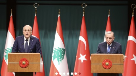 هنأ الرئيس التركي رجب طيب اردوغان رئيس الحكومة نجيب ميقاتي "على هذه الوقفة القيادية المتينة "، مؤكدا" انه لا يمكن أن نفصل أمن لبنان عن امن واستقرار المنطقة".وشدد على " ان تركيا ستبقى الى جانب لبنان ضد اعتداءات اسرائيل ". واكد ضرورة" التزام اسرائيل بوقف إطلاق النار والضغط عليها من قبل الأمم المتحدة والمجتمع الدولي من أجل الالتزام بوعودها، ونحن سنراقب هذا الأمر عن كثب". وشدد على ان "من أولوياتنا تحقيق الإستقرار في سوريا وعودتها إلى الحالة الطبيعية في المرحلة المقبلة وتشكيل ادارة دائمة ومستمرة وهذا الأمر مهم للسوريين وللمنطقة". وقال: "لبنان وتركيا سوف يكونان إلى جانب سوريا من أجل نهضتها في المرحلة المقبلة وسوف نعمل كما عملنا في السابق بحق الجيرة وسنستمر بدعم استقرار سوريا وعلى المجتمع الدولي القيام بذلك أيضاً لضمان استقرار وأمن المنطقة". اما رئيس الحكومة نجيب ميقاتي فتوجه الى الرئيس اردوغان بالقول: إن محبتكم الشخصية للبنان وعلاقاتنا الشخصية الوطيدة ستفتح الكثير من الابواب للتعاون والمساعدة". وشدد على" ان العدوان الاسرائيلي على لبنان متواصل عسكريا بشكل مباشر من خلال الخروقات اليومية لورقة الالتزامات الخاصة بوقف اطلاق النار". وكان الرئيس التركي رجب طيب اردوغان ورئيس الحكومة نجيب ميقاتي عقدا اجتماعا ثنائيا بعد ظهر اليوم في القصر الرئاسي في انقرة. محادثات موسّعة وبعد الاجتماع عقدت محادثات لبنانية- تركية موسعة تناولت ملفات التعاون المشترك بين البلدين، وشارك فيها عن الجانب اللبناني وزير السياحة وليد نصار، وزير الطاقة والمياه وليد فياض، وزير البيئة ورئيس لجنة الطوارئ الوزارية ناصر ياسين، وزير الاشغال العامة والنقل علي حمية، سفير لبنان في تركيا غسان المعلّم، وممثل قيادة الجيش العميد يوسف حداد. وعن الجانب التركي شارك وزير السياحة محمد نوري ارسوي، وزير الطاقة البارسلان بيرقدار، وزير الزراعة ابراهيم يوماكلي، وزير الدفاع بشار غولير،وزير البيئة مراد قرم،وزير النقل والبنى التحتية عبد القادر اورال اوغلو ، السفير التركي في بيروت مراد لوتيم ومحافظ انقرة واصب شاهين. لقاء صحافي مشترك وتحدث الرئيس التركي فقال: "لبنان وفلسطين أكملا هذا العام بالتهديدات والاعتداءات الاسرائيلية. ولأن وقف اطلاق النار فإننا نرى أن أكثر من مليون قد تشردوا جراء الاعتداءات وسقط اكثر من أربعة آلاف ضحية الاعتداءات الاسرائيلية ونحن نترحم على الضحايا ونعزي لبنان وعوائل الضحايا. هذا الهجوم الاسرائيلي ضد لبنان ليس جديداً وهو تعرض في السنوات الماضية لاعتداءات مماثلة، ولا يمكن أن نفصل أمن لبنان عن امن واستقرار المنطقة، كما لا يمكن أن نرى الأمن والاستقرار في المنطقة من دون سلام دائم ووقف إطلاق النار في غزة". وتابع: "أي دولة تؤمن انه بزيادة القتل تستطيع تحقيق امنها فهي تقع في خطأ فادح. اسرائيل لا تريد ان تفهم هذه الحقيقة. تركيا ستبقى الى جانب لبنان ضد اعتداءات اسرائيل من خلال تقديم المساعدات الانسانية". أضاف: "نهنئ دولة الرئيس ميقاتي على هذه الوقفة القيادية المتينة أيضاً. إننا نؤكد ضرورة وقف إطلاق النار والتزام اسرائيل بهذه الاتفاقية ومن الضروري الضغط على إسرائيل من قبل الأمم المتحدة والمجتمع الدولي من أجل الالتزام بوعودها ونحن سنراقب هذا الأمر عن كثب". وقال: "هناك اتفاقيات عديدة للتعاون بين البلدين ونحن في خلال هذا اللقاء قمنا ببحث ما يمكن اتخاذ خطوات أكثر لزيادة التعاون وتعميق العلاقات التركية اللبنانية. سنقف أمام أي محاولات تصبو إلى زعزعة الإستقرار في لبنان وسنستمر في متابعة الأوضاع عن قرب". أكمل: "بحثنا التطورات في سوريا ونؤكد انه تم البدء بمرحلة جديدة ونتفق على ضرورة استقرار سوريا وهذا الأمر يعني استقرار المنطقة. لقد عانينا خلال 13 سنة من حالة عدم الاستقرار في سوريا والمنطقة عانت من هذا الأمر وتركيا فتحت ابوابها واحتضنت السوريين واستضافتهم وكذلك لبنان". وتابع: "نحنُ نؤكد أنه من أولوياتنا تحقيق 