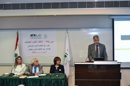 افتتح اللقاء رئيس الجامعة الدكتور شوقي عبدالله بكلمة جاء فيه: "مرةً جديدةً نلتقي مع عَلَمٍ آخَر من لبنان، يدعونا إِليه "مركز التراث" الذي، منذ 23 سنة بدون توقُّف، يتولَّى الإِضاءَة على تراث لبنان بمختلف أَعلامه ومعالِمه وعلاماته. ويكون أَنَّ موعدنا اليوم هو مع كاتبة لبنانية تركَت لنا إِرثًا غنيًّا في سجلّ الأَدب اللبناني، وتوزَّعت حياتُها بين لبنان ومصر، فبادلَت لبنانَ بولائها، وبادلَت مصرَ بوفائها، فكانت سيِّدةَ المنابر والندوات والحلقات الأَدبية في البلَدين". وأَضاف الرئيس عبدالله: "هذا اللقاء مع تراثنا هو في قلب رسالة مركز التراث في جامعتنا، وهو الذي يتفرَّد بهذه الرسالة بين سائر جامعات لبنان. فمنذ ما يَقْرُب من ربع قرن، يحمل في وجدانه كلَّ ما يحتضِن لبنان من إِرثٍ حضاري، وتراثٍ ثقافي، وموروثٍ شعبي، حتى تكتملَ في سجِلّ لبنانَ التاريخ رُموزُ تراثنا مثلما يقدِّمه لنا دوريًّا "مركز التراث اللبناني" بإِدارة زميلِنا في الجامعة الشاعر هنري زغيب، الذي لا ينام على حُلْم إِلَّا ليُحقِّقَهُ على هذا المنبر، فتزدادَ جامعتُنا إِرثًا، ويزدادُ ضيوف جامعتِنا معرفةً، ويزدادُ لبنان إِضاءةً على ما في قلبه من كنوز معرفيةٍ ثمينة". كارمن البستاني: مناسبة اللقاء كانت صدور كتاب "مي زيادة - شغَف الكتابة" بالفرنسية للدكتورة كارمن البستاني التي استضافها "المركز" وحاورها مديرُه الشاعر هنري زغيب، فجالت معه على تفاصيل جديدة في كتابها، منها طفولة مي في الناصرة، وانتقالها صبيَّةً إلى دير الزيارة في عينطورة -كسروان وتمضيتها فيه ثلاث سنوات (1900-1903)، وهو بات منذ 2021 مقرّ جمعية ومعهد "فيلوكاليَّا" بإِدارة الأُخت مارانا سعد. وتحدثت البستاني عن عودة ميّ إلى القاهرة، ومطالع كتاباتها في جريدة أَبيها الياس زيادة "المحروسة"، كما سردت تفاصيل عن "صالون مي الأَدبي" الذي كانت تستقبل فيها كبار أَعلام العصر في القاهرة: أَحمد شوقي، طه حسين، خليل مطران، اسماعيل صبري، يعقوب صروف، أَنطون الجميّل، داود بركات، ولي الدين يكن، وسواهم. وأضاءت البستاني على ريادة مي في كتابة السيَر: باحثة البادية، عائشة التيمورية، وردة اليازجي، وعلى جولات مي في عدد من الدول الأُوروبية. وركَّزت البستاني على علاقة مي باللغة العربية وشغفها بها وكتاباتها عنها في صحافة القاهرة: "الأهرام"، "المقتطف"، "الهلال" وسواها. ثم تحدثت عن مي في لبنان وخطابَين لها في بكفيا وضهور الشوير، وما كان لها لاحقًا من مشاكل وأَزمات أَودَت بها إِلى مصحّ "العصفورية". وتوقفت مليًّا عند العلاقة بين مي وجبران، فرَوَت ظروفها التي بدأَت سنة 1913 منذ قرأَت مي كلمة جبران في تكريم خليل مطران، واستمرَّت المراسلة الطويلة بينهما حتى وفاة جبران سنة 1931. جنى بيُّوض: بعد كل جواب كانت الدكتورة جنى مكرم بيُّوض هيَّأَت ما يقابله من نصوص مي، فقرأَتْ فقرات من رسائلها إِلى ابن عمها جوزف زيادة، وإِلى جبران، وخطبتها في ضهور الشوير، ودفاعها عن اللغة العربية ودعوة أَبنائها إِلى التمسك بها. كما قرأَت بيُّوض فقرات من مذكرات مي في "دير الزيارة" (عينطورة)، وانطباعها عن الربيع في طبيعة ذاك الدير، وعن مفهوم السعادة من منظار ميّ، وعن تعلُّقها بلبنان ودفاعها عن القيَم عند المرأَة، فأضافت قراءات بيُّوض فسحةً أَوضح لمتابعة فكر مي زيادة. وختامًا وقَّعت المؤلفة على نسخ كتابها لعدد غفير من الحضور الذي ملأ قاعة الجامعة للتعرف أَكثر إِلى حضور مي زيادة في الأَدب العربي. كلام الصورة : رئيس الجامعة د. شوقي عبدالله يلقي كلمته، وإِلى المنبر: كارمن البستاني، هنري زغيب، وجنى بيُّوض.