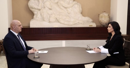سئل: في هذا الإطار، هناك إقتناع اليوم بأن تحصين لبنان يأتي من خلال تحسين علاقته مع سوريا، لأن البعد الجغرافي والاستراتيجي يتداخل بشكل كبير، وفخامتكم ستذهبون الى الأبعد لتوثيق هذه العلاقة. كيف تلاقون الخوف الشيعي مما يسمونه "المارد السني" في سوريا؟ أجاب: العلاقة تبنى بين دولة ودولة. وهذا الخوف، يضخّمه البعض للأسف ويهوّل فيه لأهداف خاصة. هذا الخوف غير موجود، وإذا كان هناك من خوف فهو يشمل جميع اللنبانيين وليس فقط فئة منهم. ولذلك، نحن نعمل على تحصين علاقتنا مع سوريا امنياً وعسكرياً برعاية المملكة العربية السعودية، وترسيم الحدود أساسي في هذا الإطار. ولكن هذا الخوف غير مبرر. وكما قلت إذا كان هناك من خوف ما، فالدولة اللبنانية بقواها المسلحة تعنى به. والجيش موجود على الحدود وهو جاهز للحفاظ على الأمن من أي محاولة تستهدف لبنان. وحتى في الداخل، فإننا نلاحظ ان جميع الأفرقاء كلمتهم واحدة لجهة تحصين لبنان وتحييده، من سماحة المفتي دريان الى مشيخة العقل، وصولا الى جميع الفاعليات السياسية والدينية. الكل مع تحييد لبنان، وهذا ما يقويه ويحصنه تجاه أي تحديات تواجهه من أي جهة كانت.