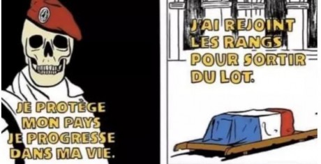 أرفقت الصورة بعبارة "انضممت إلى الجيش لأكون متميزا عن الآخرين"، وهو شعار يستخدمه الجيش في حملته الحالية، وإعلاناته لتجنيد عناصر جدد في الجيش الفرنسي.