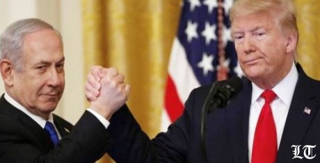 "ورغم اعتراض الفلسطينيين على الخطة ومقاطعة ترامب بسبب ما يرونه تحيزا لإسرائيل حضرت ثلاث دول عربية خليجية هي عمان والبحرين والإمارات مراسم إعلان الخطة في البيت الأبيض في دلالة على تغير الزمن".