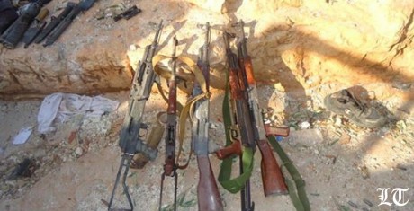 جرى ضبط كمية كبيرة من الاسلحة والذخائر والقنابل اليدوية والاحزمة الناسفة.