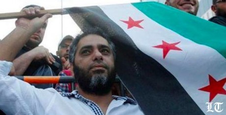 كلام الصورة:فضل شاكر يرفع علم المعارضة السورية(الصورة من رويترز)