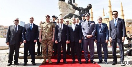 وضع بو صعب خلال الإحتفال إكليلاً من الزهر بإسم الجمهوريّة اللبنانيّة على نصب الشهداء.