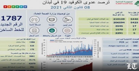 اعلنت وزارة الصحة العامة تسجيل 5440 اصابة كورونا جديدة رفعت العدد التراكمي للحالات المثبتة ال 210139 كما تم تسجيل 17 حالة وفاة.
