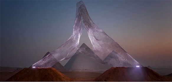 تشهد منطقة الجيزة في مصر معرضا فنيا في حرم الاهرامات.
