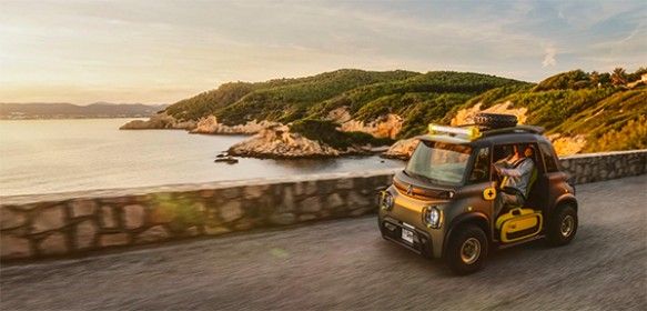 صمّمت سيتروين أفضل سيارة كهربائية للطرق الوعرة في العالم. احزم حقائبك واحمل السيارة واستعد للمغامرة ، فهناك الآن إصدار خاص بالطرق الوعرة من سيارة سيتروين الصغيرة والرائعة للاشتراك EV . لتأكيد شخصية الرحالة ، يقدم المفهوم مغامرات ممتعة على الطريق أو على مسارات الشاطئ ، والسفر بالكهرباء ليكون بلا ضوضاء وخالي من الانبعاثات. تم تصميم التصميم ليكون رفيقك الممتع والوظيفي والعملي والصديق للبيئة. سيارة سيتروين الجديدة مميزة. يتم تشكيل صورة ظلية قوية من مشاعل الحاجز المعاد صياغته والحماية الأنبوبية في الجزء السفلي من الأبواب. يتم خلق إحساس بالحرية حيث تمت إزالة هذه الأبواب واستبدالها بقماش شفاف مقاوم للمطر ومزود بسحابات لإبقاء الركاب جافين عند الحاجة. يرتدي الهيكل لونين: الكاكي المؤكسد في الأمام والأسود المرقط في الخلف. يتم تمييز العناصر الرئيسية والرسومات والملحقات باللون الأصفر الستريكي. تم تركيب درع المغامرة في EV كملحقات مميزة وعملية للغاية من الخارج الى جانب شبكة المصباح والمصدات. يوجد شريط إضاءة LED في الأعلى ، مما يضيء المسار للرحلات الليلية ولأجواء "نار المخيم" عند الوقوف. في الداخل ، تظهر العلامات "العسكرية" على حوامل الملحقات وصناديق التخزين وعلى لوحة القيادة. تم تصميم الجزء الداخلي بحلول عملية لتخزين ذكي ومحمول خصوصا للأمتعة.