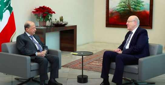 أكد رئيس الجمهورية ميشال عون أن "الدستور لا يمنع إصدار مرسوم قبول استقالة الحكومة واحتمال إصداره لا يزال قائماً"، لافتًا إلى أن "تأليف الحكومة يبدو مستحيلاً". وأعلن عون أنّ "الفوضى الدستورية محتملة في لبنان لشغور منصب الرئاسة" بعد رحيله. ردت أوساط رئيس حكومة تصريف الأعمال نجيب ميقاتي على تصريح رئيس الجمهورية ميشال عون اليوم السبت، الذي قال فيه إن “احتمال إصدار مرسوم قبول استقالة الحكومة لا يزال قائماً”، مشيرة إلى أن “توقيع مرسوم قبول استقالة الحكومة هو “لزوم ما لا يلزم” ويعتبر كأنه لم يكن ولا يغير من الواقع شيئًا”، ودعت لمراجعة “ما قاله المرجع الدستوري إدمون رزق اليوم بوصفه هذا الأمر بالخيانة العظمى”. وتابعت أوساط ميقاتي لـ”الجديد”: “رئيس الحكومة أكد مرارا وتكرارا أنه لن يكون تصادميا ولا استفزازيا ولا يسعه إلا أن يقوم بما أوكله إليه الدستور”.
