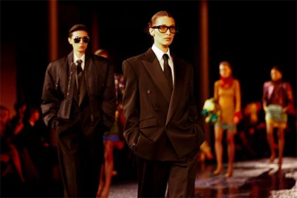 قدم المدير الإبداعي لدار أزياء سان لوران أنتوني فاكاريلو تشكيلة من البدلات الواسعة والرجالية.