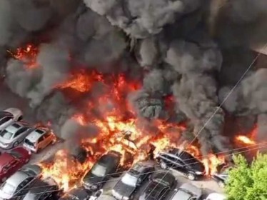 اندلع حريق كبير في مولد كهرباء في موقف للسيارات في شارع الحمراء بالقرب من مطعم بربر.