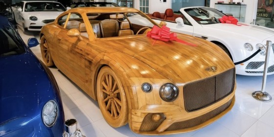 تُعيد نسخة خشبية من سيارة Bentley Continental GT موديل 2020 إنتاج التصميم الأصلي للسيارة.
