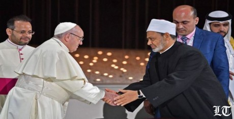 أما وثيقة أبوظبي،وثيقة الاخوة الانسانية، التي وقعها مع البابا ففيها من نبذ العنف الديني ما يجعلها وثيقة أممية.