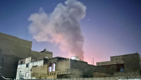 هزت انفجارات عنيفة صنعاء الخاضعة لسيطرة الحوثيين، جراء غارات جوية لمقاتلات أميركية بريطانية.