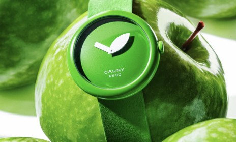 تصميم تاداو أندو لـ "ساعة آبل" لصالح Cauny بيدٍ على شكل ورقة شجر داخل المينا.